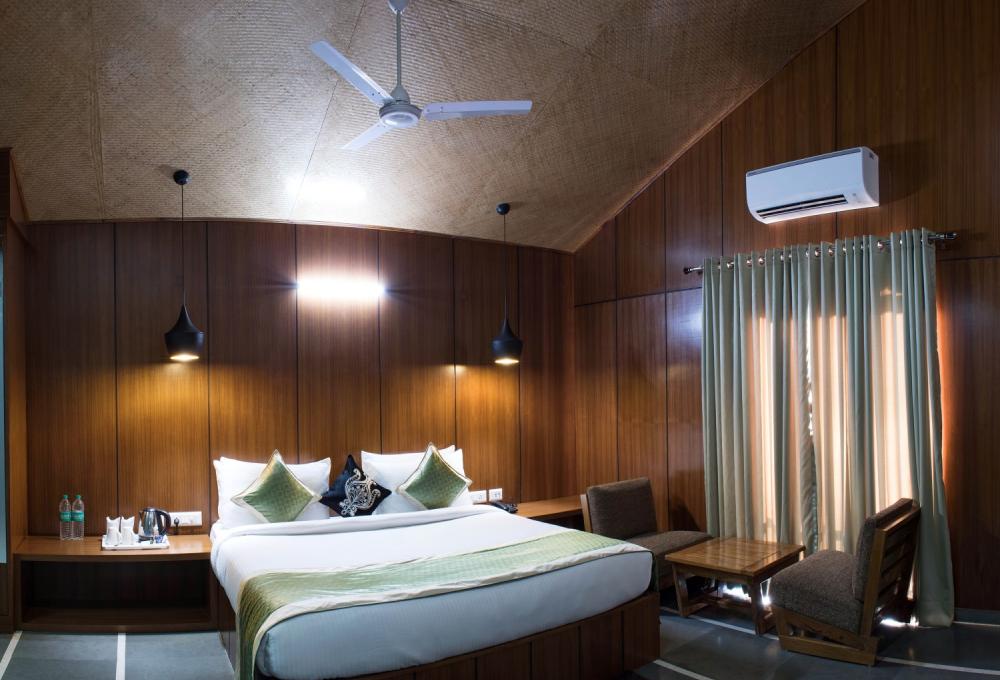 Our contemporary architectured luxury room offers 1 stunning bedroom. Patio area in front of the room gives space to sit and enjoy the beauty around. It can accommodate 2 Adults in King-sized bed with the option of an additional bed.